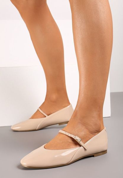 Beżowe Płaskie Balerinki w Stylu Mary Jane Ozdobione Paskiem Kikizelle
