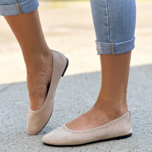 Beżowe damskie baleriny z cyrkoniami beżowy