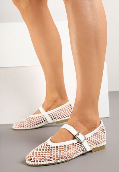 Białe Balerinki z Siateczki z Paskiem z Klamerką Artewi