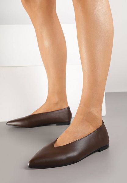 Brązowe Balerinki Vices z Wkładką ze Skóry Naturalnej w Klasycznym Stylu Nalivee