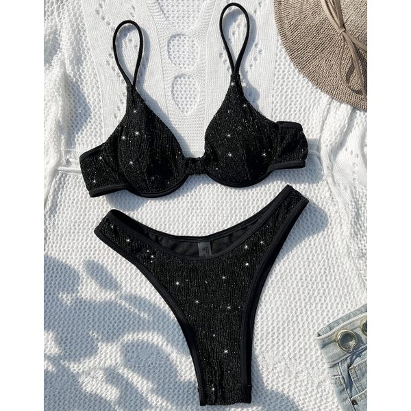 Strój kąpielowy dwuczęściowy z regulowanymi ramiączkami błyszczący plażowy Alina