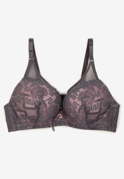 Fioletowo-Różowy Biustonosz Full Cup Zdobiony Koronką Raviera