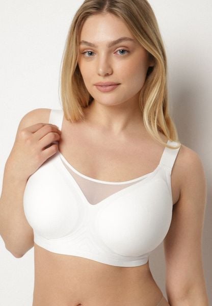 Biały Gładki Biustonosz z Siateczkową Wstawką i Szerokimi Ramiączkami Salandrea