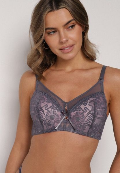 Szaro-Różowy Biustonosz z Koronką i Transparentną Wstawką Heliphine