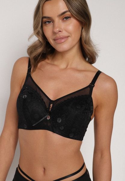 Czarny Biustonosz z Koronką i Transparentną Wstawką Heliphine