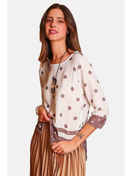 – z dodatkiem jedwabiu- dekolt: karo- zapięcie: guzik na plecach- krój: luźny- wzór: kropkiUwaga: Na metkach odzieży tej marki znajdują się rozmiary francuskie. Rozmiarówka została przez nas przeliczona. Podane do wyboru warianty rozmiarów odpowiadają standardowym europejskim rozmiarom konfekcji. Prosimy zapoznać się z zamieszczonym objaśnieniem rozmiarów.