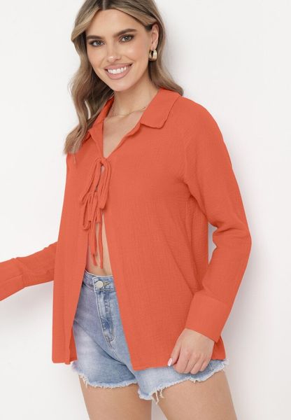 Pomarańczowa Bawełniana Bluzka z Kołnierzykiem i Wiązaniem z Przodu Abilla