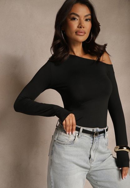 Czarna Bluzka z Wiskozą i Asymetrycznym Dekoltem Tatolinna