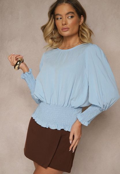 Niebieska Bluzka z Wiskozą Ozdobiona Ściągaczami Tosara