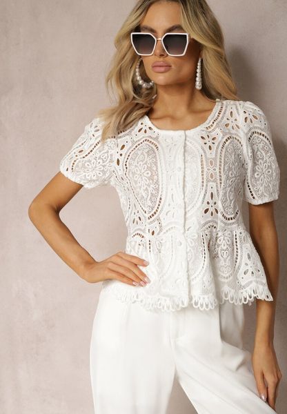 Biała Koronkowa Bluzka z Guzikami Wisterria