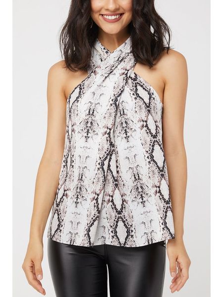 – ramiączka: na szyję- zapięcie: guzik na plecach- krój: prosty- wzór: WążUwaga: Przy wyborze właściwego wariantu zaleca się korzystanie z tabeli rozmiarów.