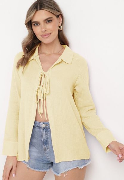 Żółta Bawełniana Bluzka z Kołnierzykiem i Wiązaniem z Przodu Abilla