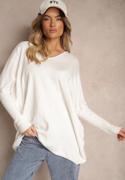 Biała Nietoperzowa Bluzka z Dzianiny z Wiskozą z Dekoltem i Cyrkoniami na Plecach Vailune