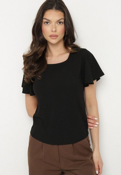 Czarna Bluzka Ozdobiona Szerokimi Rękawami Sunlisa