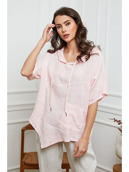 – czysty len- kaptur: ze ściągaczem tunelowym- dekolt: V- długość rękawa: półdługi- krój: prosty- look: jednokolorowy