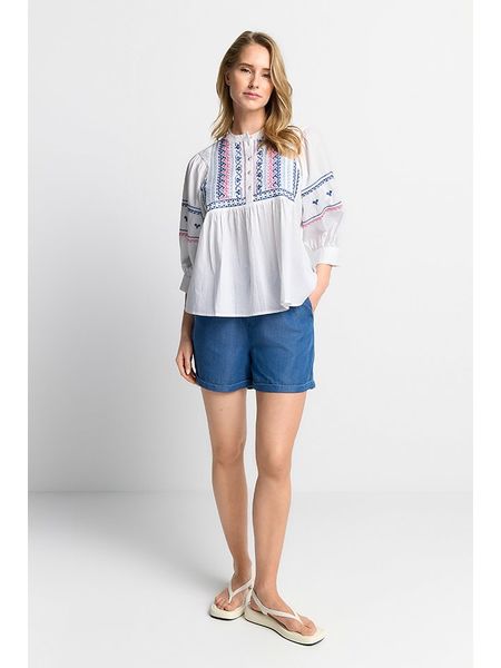 – czysta bawełna- dekolt: okrągły- zapięcie: skrócona listwa guzikowa- rękaw: bufiasty- długość rękawa: półdługi- detale: haft- krój: luźny- look: jednokolorowy