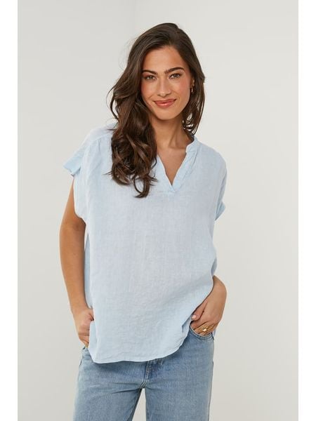 – czysty len- dekolt: z rozcięciem- krój: luźny- look: jednokolorowyUwaga: Na metkach odzieży tej marki znajdują się rozmiary francuskie. Rozmiarówka została przez nas przeliczona. Podane do wyboru warianty rozmiarów odpowiadają standardowym europejskim rozmiarom konfekcji. Prosimy zapoznać się z zamieszczonym objaśnieniem rozmiarów.