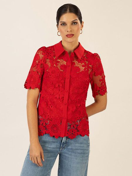 – kołnierz: kent- zapięcie: listwa guzikowa- zintegrowany podkoszulek: tak- detale: koronka- krój: prosty- look: jednokolorowy- wykończenie: delikatnie prześwitujące