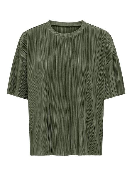 – dekolt: okrągły- długość rękawa: półdługi- look: jednokolorowy, plisy- krój: luźny