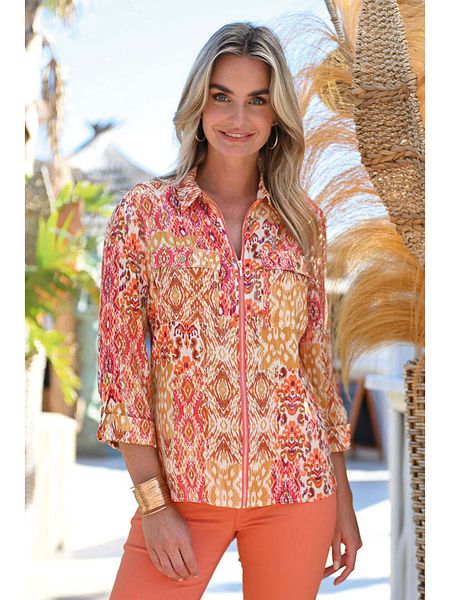 – czysta wiskoza- kołnierz: kent- zapięcie: suwak- zakończenie rękawów: patka i guzik- kieszenie: na piersi- krój: prosty- wzór: na całościWskazówka: Na metkach odzieży tej marki znajdują się rozmiary francuskie. Rozmiarówka została przez nas przeliczona. Podane do wyboru warianty rozmiarów odpowiadają standardowym europejskim rozmiarom konfekcji. Prosimy zapoznać się z zamieszczonym objaśnieniem rozmiarów.