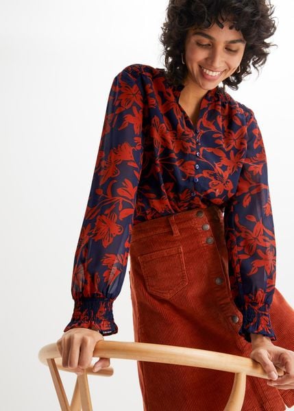 Bluzka z lekko zaznaczoną talią, stójką i rękawami 3/4. Dł. od ok. 65 cm (rozm. 36) do ok. 74 cm (rozm. 54). Można prać w pralce.