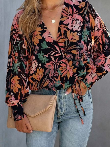 – dekolt: V- zakończenie rękawów: mankiet na guzik- detale: ozdobne wiązanie- krój: prosty- wzór: kwiatowyUwaga: Podczas wybierania odpowiedniego rozmiaru należy kierować się tabelą, widoczną na ostatnim zdjęciu.