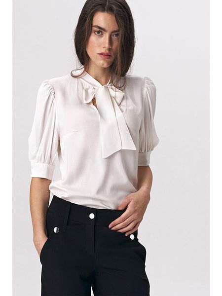 – czysta wiskoza- kołnierzyk: szalowy- rękaw: bufiasty- zakończenie rękawów: mankiet na guzik- krój: prosty- look: jednokolorowy