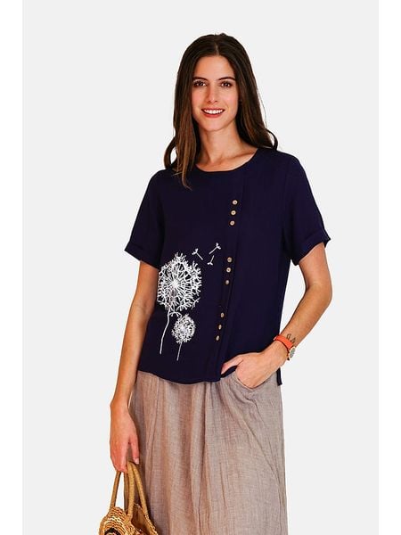 – z dodatkiem lnu- dekolt: okrągły- detale: ozdobne guziki- krój: luźny- nadruk: graficzny- look: jednokolorowyWskazówka: Na metkach odzieży tej marki znajdują się rozmiary francuskie. Rozmiarówka została przez nas przeliczona. Podane do wyboru warianty rozmiarów odpowiadają standardowym europejskim rozmiarom konfekcji. Prosimy zapoznać się z zamieszczonym objaśnieniem rozmiarów.