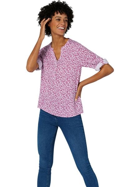 Różowo-Fioletowa Bluzka w Abstrakcyjny Wzór z Guzikami i Koronkowymi Wstawkami Aidavla