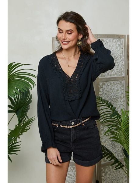 – czysta bawełna- dekolt: V- detale: szydełkowana koronka- krój: luźny- look: jednokolorowyUwaga: Na metkach odzieży tej marki znajdują się rozmiary francuskie. Rozmiarówka została przez nas przeliczona. Podane do wyboru warianty rozmiarów odpowiadają standardowym europejskim rozmiarom konfekcji. Prosimy zapoznać się z zamieszczonym objaśnieniem rozmiarów.