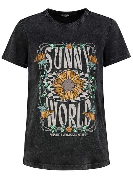 – czysta bawełna- dekolt: okrągły- krój: prosty- nadruk: w formie napisu- wzór: batik