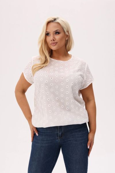 Elegancka bluzka Lira ze 100% haftowanej bawełny w drobne stokrotki PLUS SIZE XXL OVERSIZE JESIEŃ