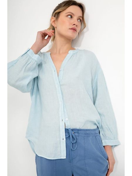 – czysty len- dekolt: okrągły- zapięcie: listwa guzikowa- zakończenie rękawów: guzik- krój: luźny- look: jednokolorowy
