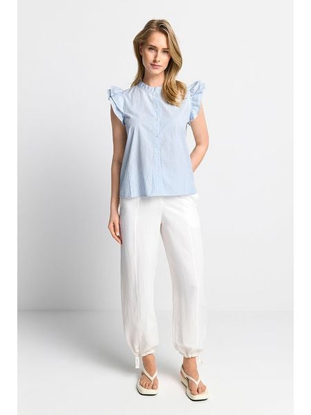 – czysta bawełna- kołnierz: stójka- zapięcie: listwa guzikowa- krój rękawów: motylek- krój: prosty- detale: falbany- wzór: paski