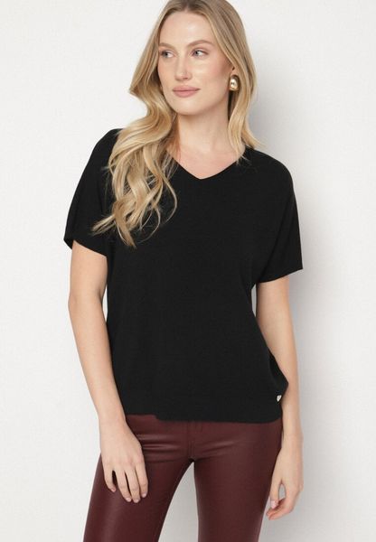 Czarna Dzianinowa Bluzka z Dekoltem w Kształcie Litery V Fenima