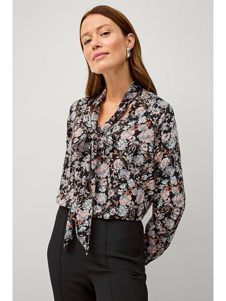 – kołnierz: kent- zapięcie: wiązane tasiemki- zakończenie rękawów: mankiet na guzik- krój: prosty- wzór: na całości