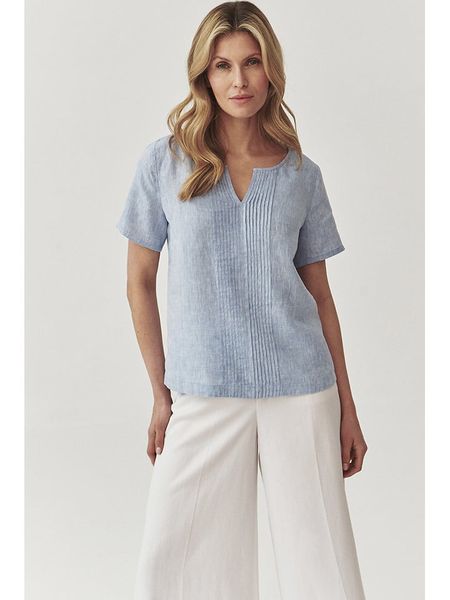 – czysty len- dekolt: V- krój: prosty- detale: plisy- look: jednokolorowy