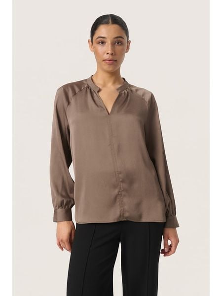 – z dodatkiem poliestru pochodzącego z recyklingu- dekolt: z rozcięciem- rękaw: bufiasty- zakończenie rękawów: guzik- krój: prosty- look: jednokolorowy