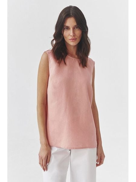 – czysty len- dekolt: okrągły- ramiączka: szerokie- krój: prosty- dolny brzeg: zaokrąglony- look: jednokolorowy
