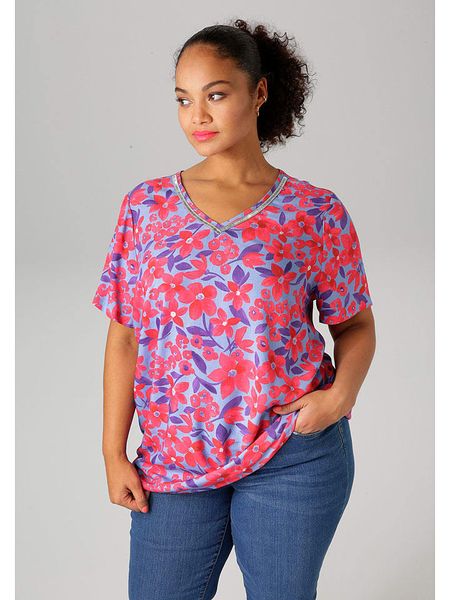 Aniston Bluzka w kolorze błękitno-czerwonym rozmiar: 46