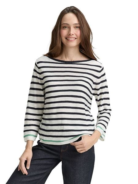 – dekolt: łódka- długość rękawa: 7/8- krój: luźny- wzór: paski