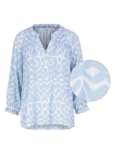 – czysta wiskoza- dekolt: z rozcięciem- zapięcie: wiązane tasiemki- zakończenie rękawów: elastyczne- krój: luźny- wzór: graficzny