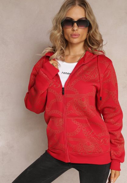 Czerwona Bluza z Nadrukiem i Kapturem Lophia