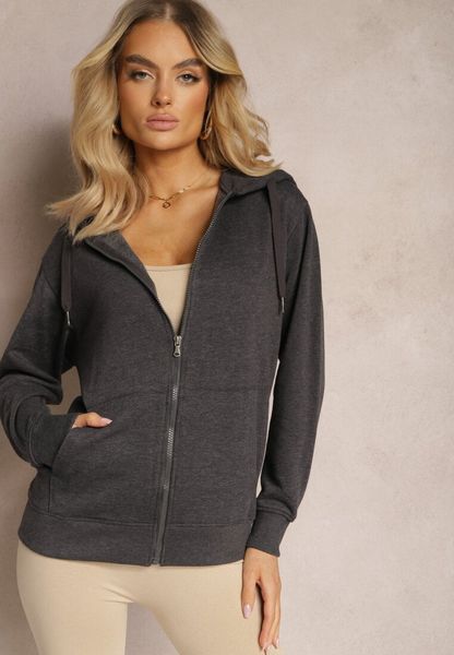 Ciemnoszara Rozpinana Bluza z Kapturem Wykończona Polarem i Ściągaczem Bachetta