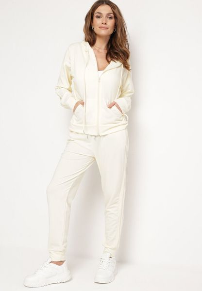 Jasnobeżowy 2-częściowy Komplet Dresowy Bluza z Kapturem Spodnie z Gumką w Pasie Regulowane Tellfana