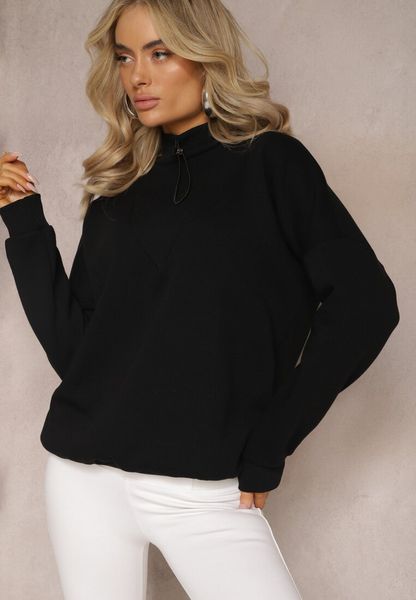 Czarna Ocieplana Bluza Bawełniana z Półgolfem Heraia
