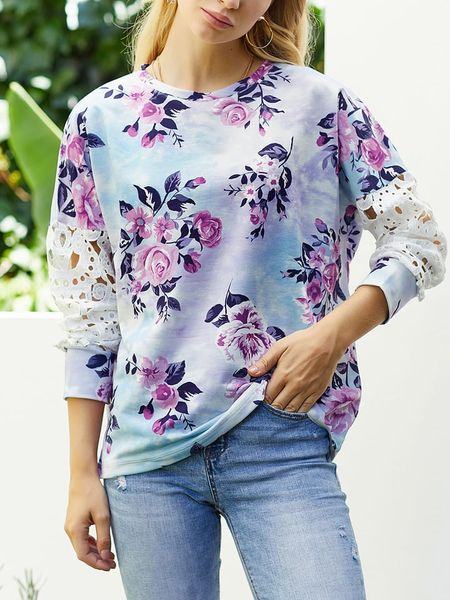 – dekolt: okrągły- ściągacz: zakończenia rękawów- detale: szydełkowana koronka- krój: luźny- wzór: kwiatowy