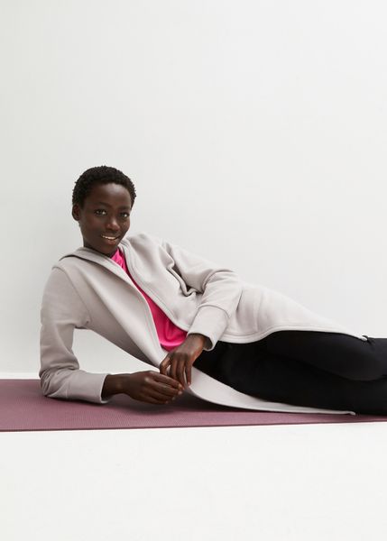 Wygodna długa bluza z kieszeniami kangurkami i miękko szczotkowaną spodnią stroną. Dł. w rozm. 40/42 ok. 82 cm. Można prać w pralce.
