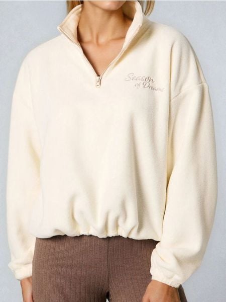 Polarowa bluza z krótkim zamkiem i regulowanym stoperami dołem – kremowy