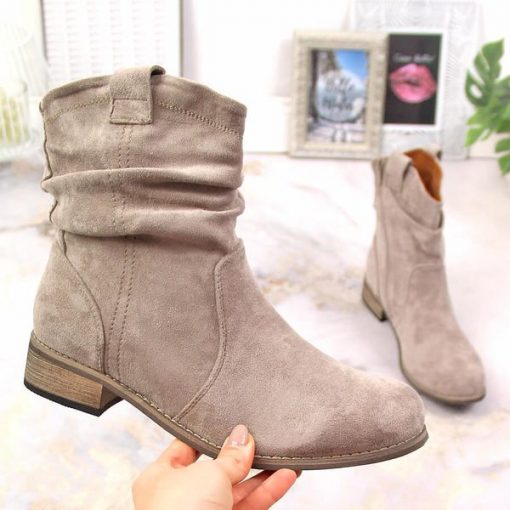 Zamszowe botki damskie kowbojki ocieplane beżowe eVento